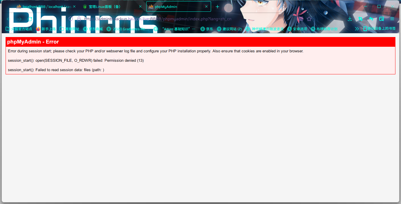 仔细看了下报错,说是无法创建或写入/tmp下的一个目录,之后我直接把/tmp目录的权限改成777之后MySQL就能启动了,但没想到事情并没就此结束,到了晚上我在政治课上摸鱼写代码的时候写着写着发现访问PHP文件502了,看了下宝塔,我用的PHP81的状态变成了关闭,还开不起来,也是报/tmp/php-fpm81.sock不存在,touch了一下问题解决,然后我顺手执行了一下yum update更新了一下软件包,随后发现PHP又502了。。。。。。然后tmp目录又不见了。。。。。。离谱的是pma也炸了。。。