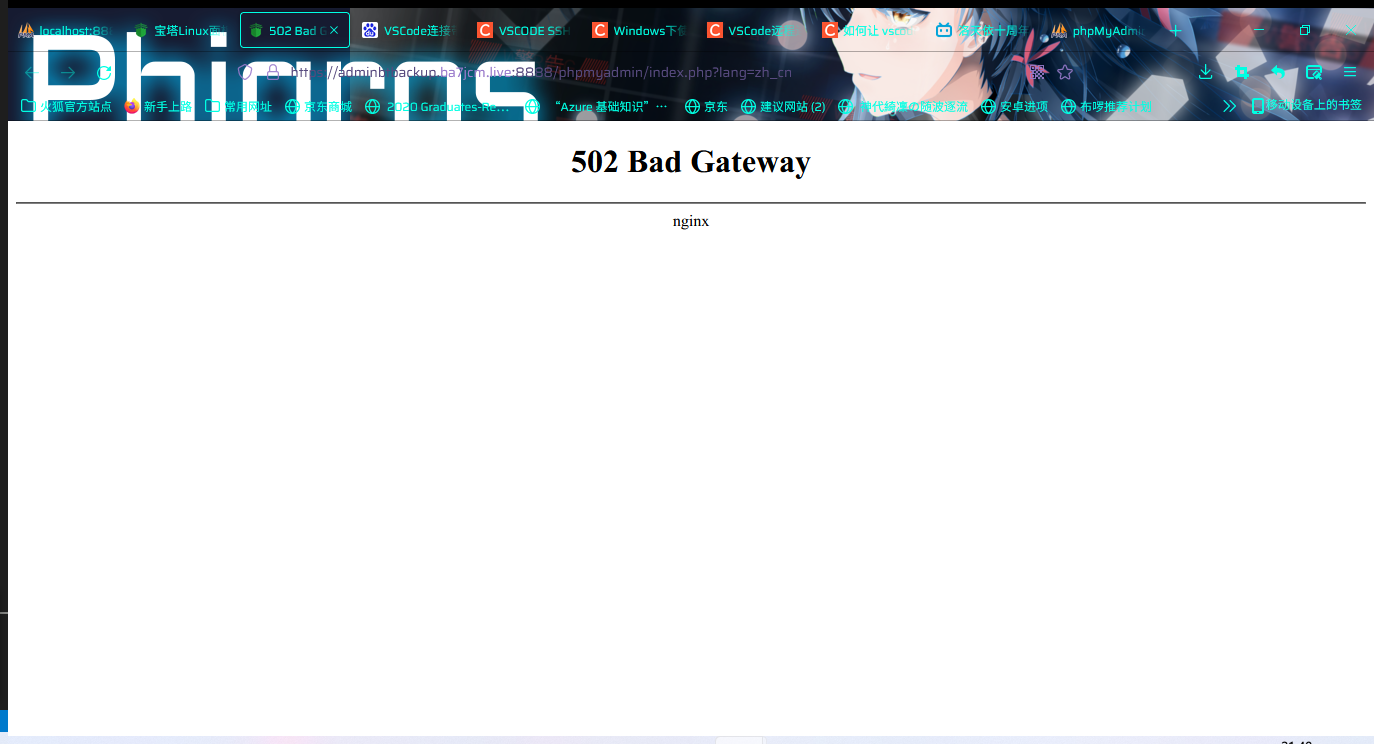 可能是因为我忘记开省电模式的原因,我笔记本没电了,然后我在手机上用现有的条件ssh到服务器上之后创建了tmp目录,之后赋权666,刷新发现pma的状态变成502了